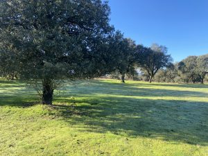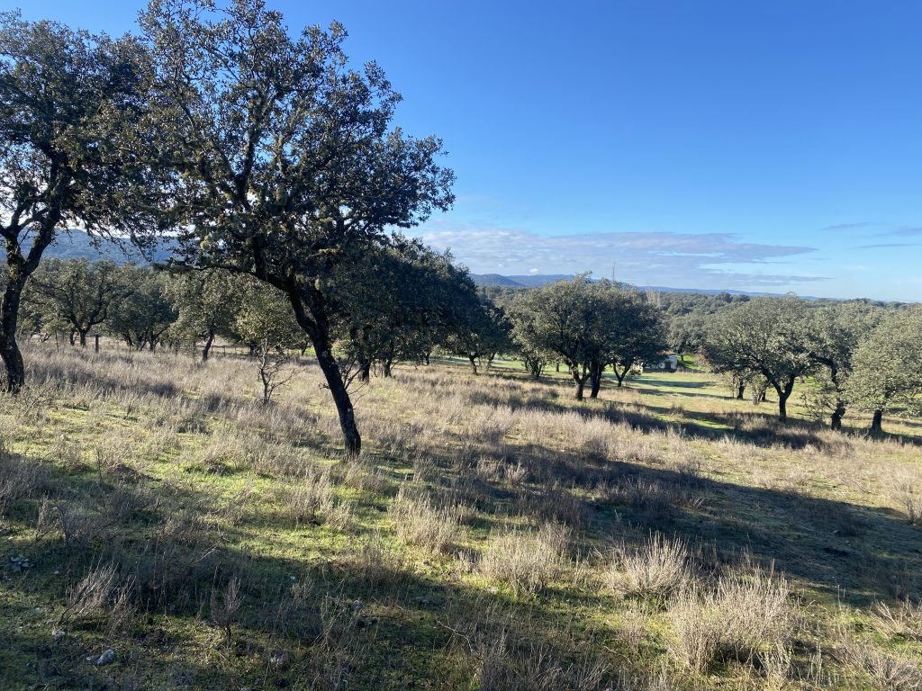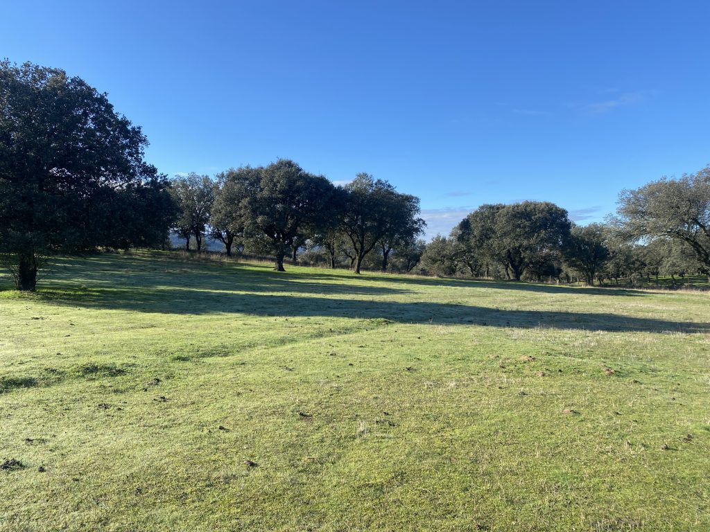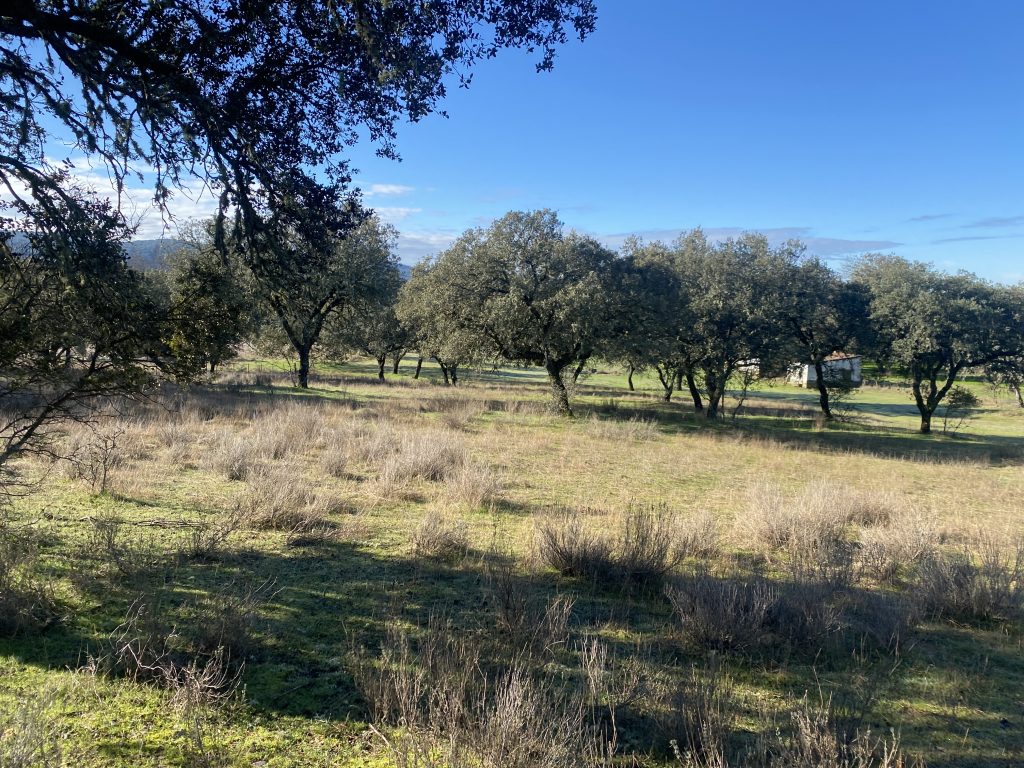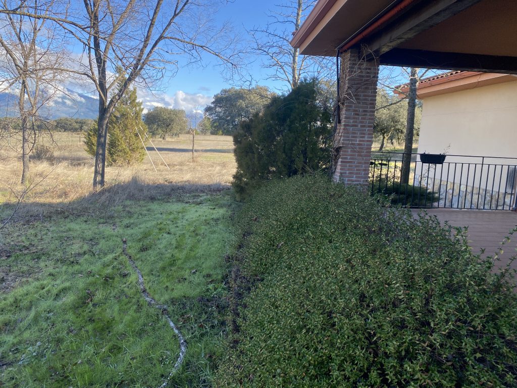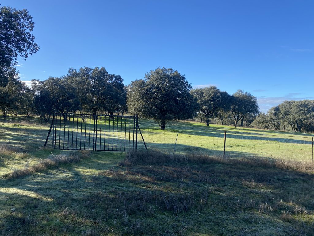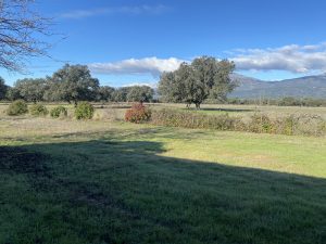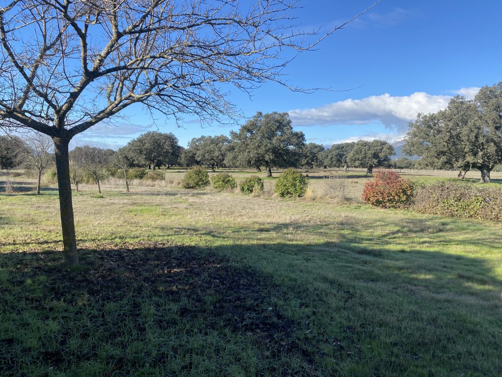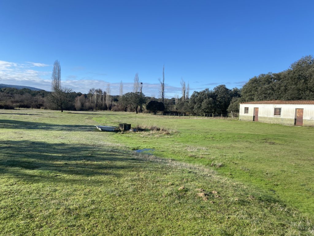 La parcela tiene dos zonas bien diferenciadas, una donde está la casa, que es más abierta. La otra, separada con una cancela, tiene una dehesa preciosa, que acaba en una pradera, donde está el pozo de sondeo, unas cuadras y una habitación con chimenea, que podría ser un estupendo guadarnés o cuarto de aperos.
