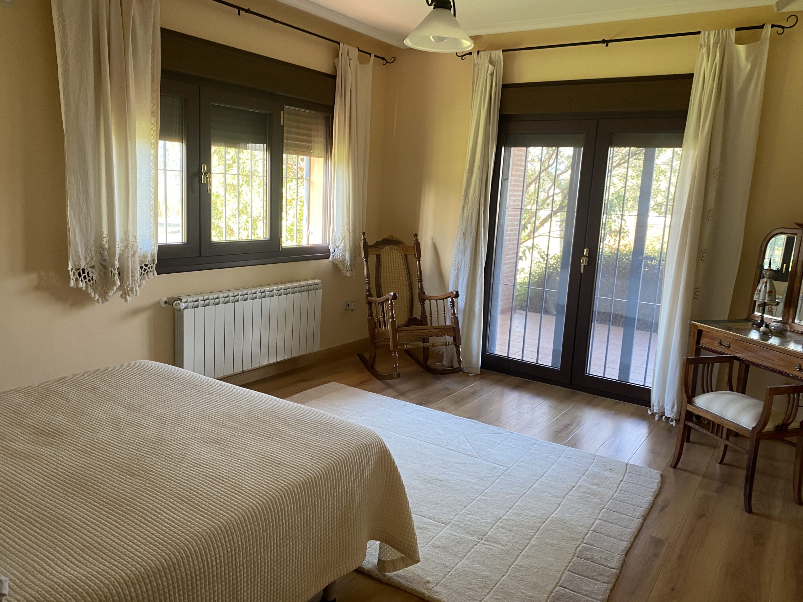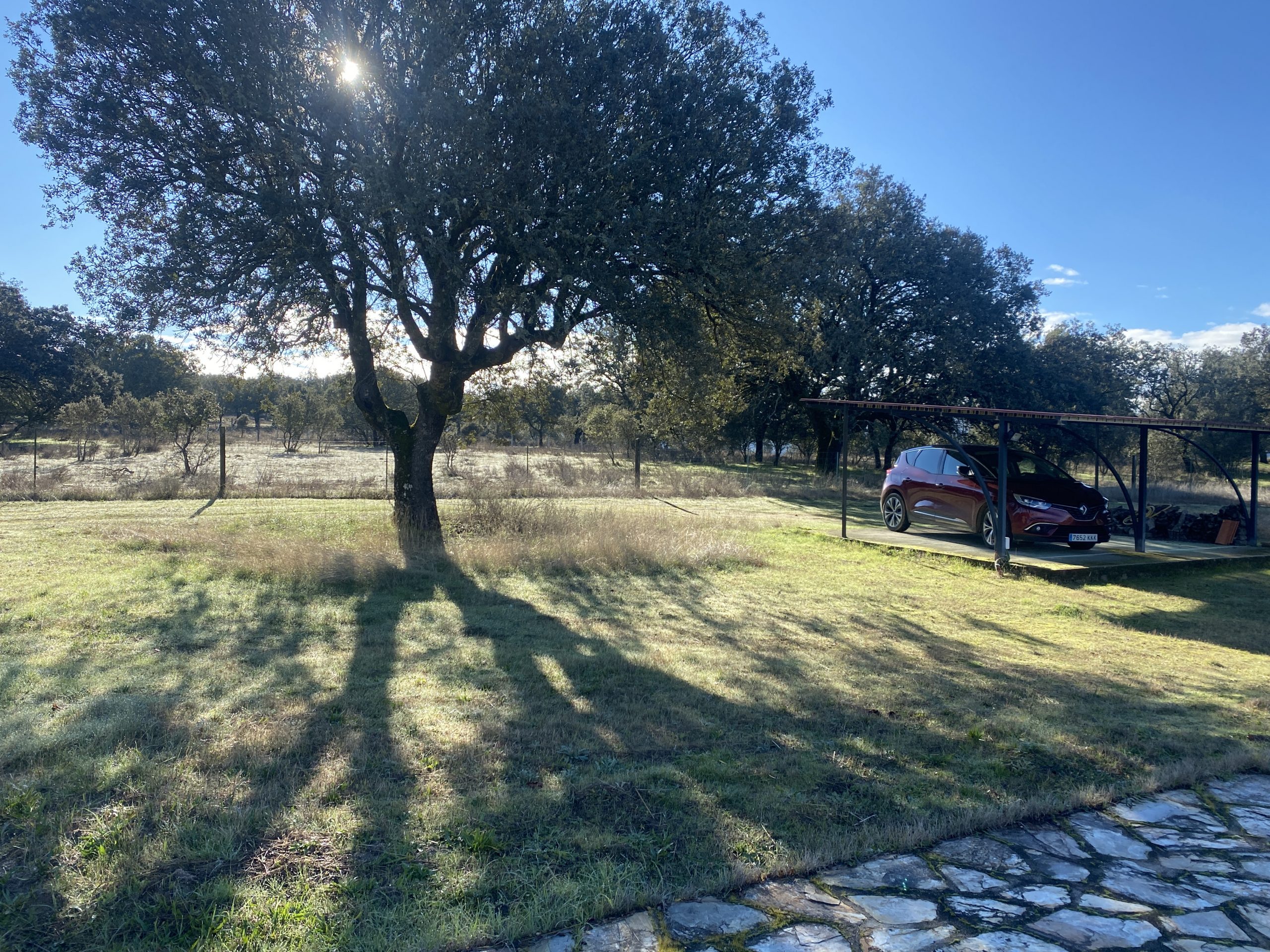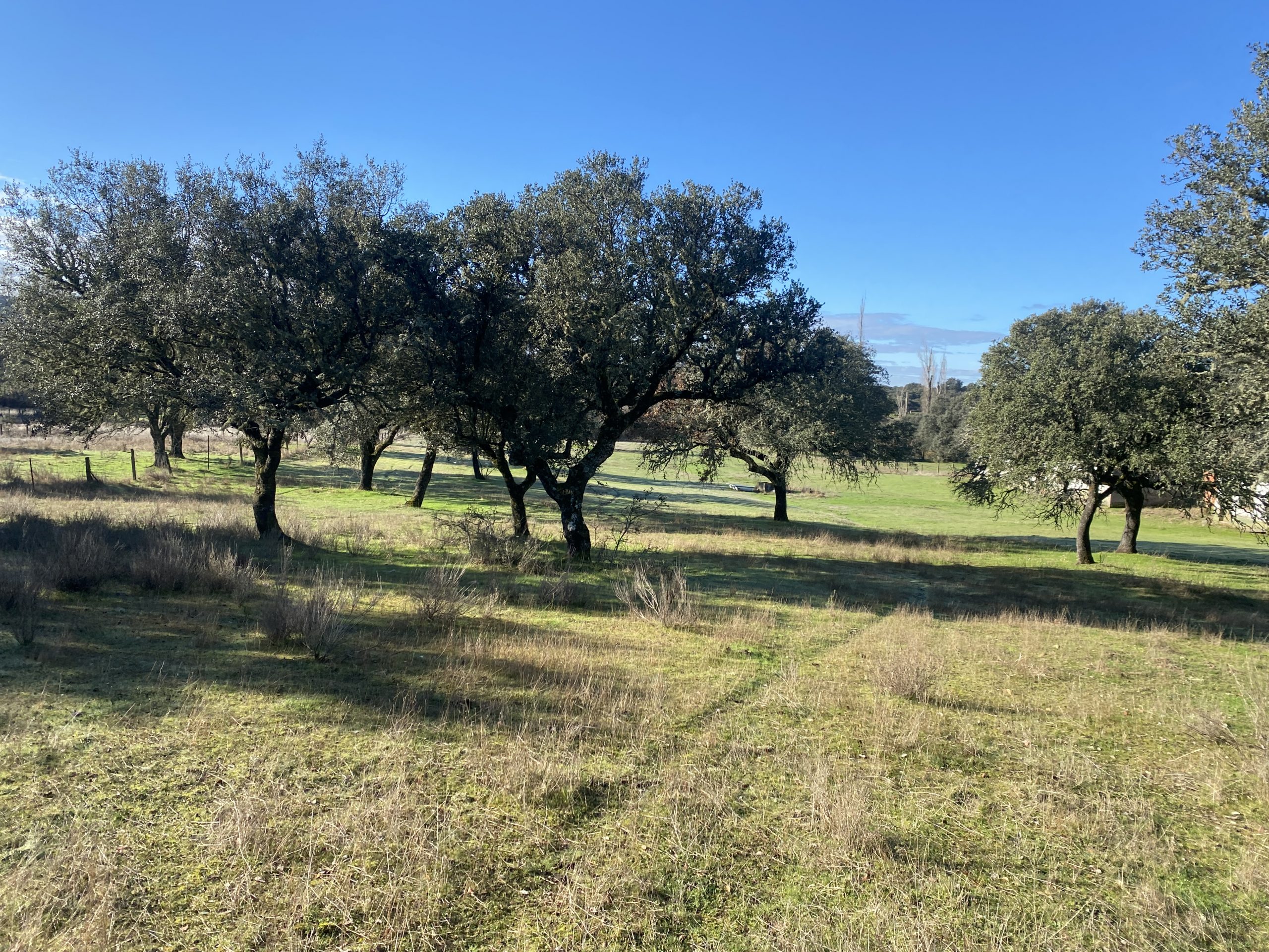 La parcela tiene dos zonas bien diferenciadas, una donde está la casa, que es más abierta. La otra, separada con una cancela, tiene una dehesa preciosa, que acaba en una pradera, donde está el pozo de sondeo, unas cuadras y una habitación con chimenea, que podría ser un estupendo guadarnés o cuarto de aperos.