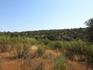 Finca de encina, chaparro, retama, jara y muy buen pasto. Con orografía ondulada, fácil de pasear. Las vistas desde el punto más alto son magníficas.