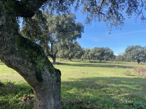 La finca es una bonita dehesa de orografía muy suave. Cuenta con un denso arbolado, con un suelo de pasto de calidad inmejorable. Linda con un camino vecinal que está en perfecto estado.