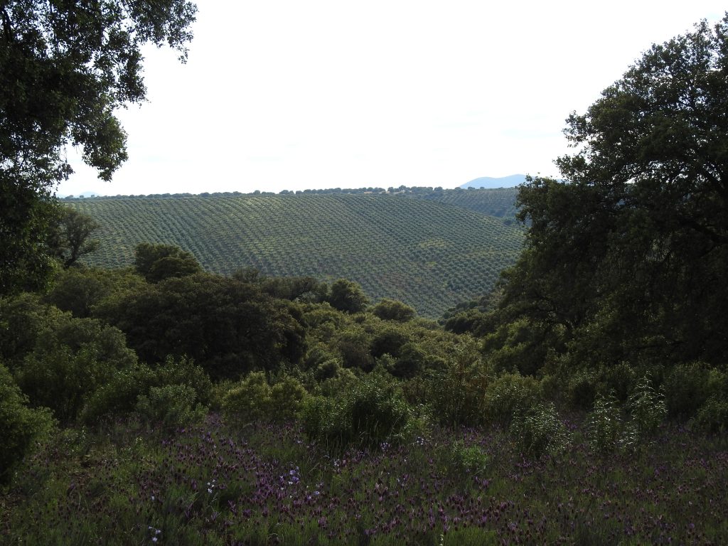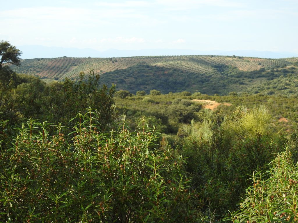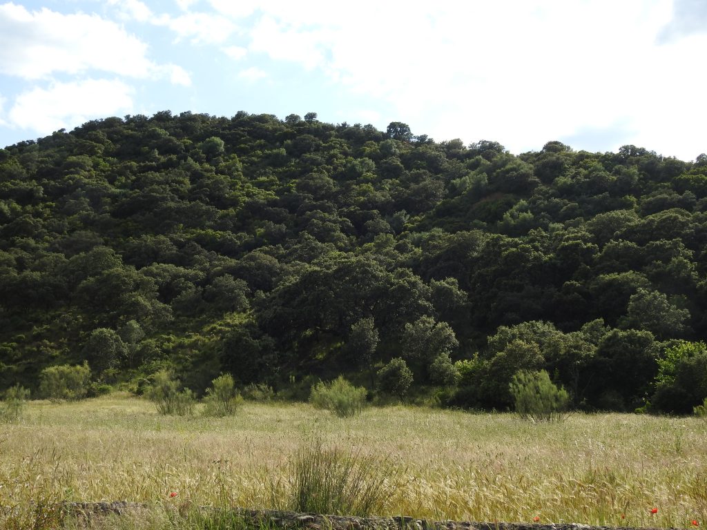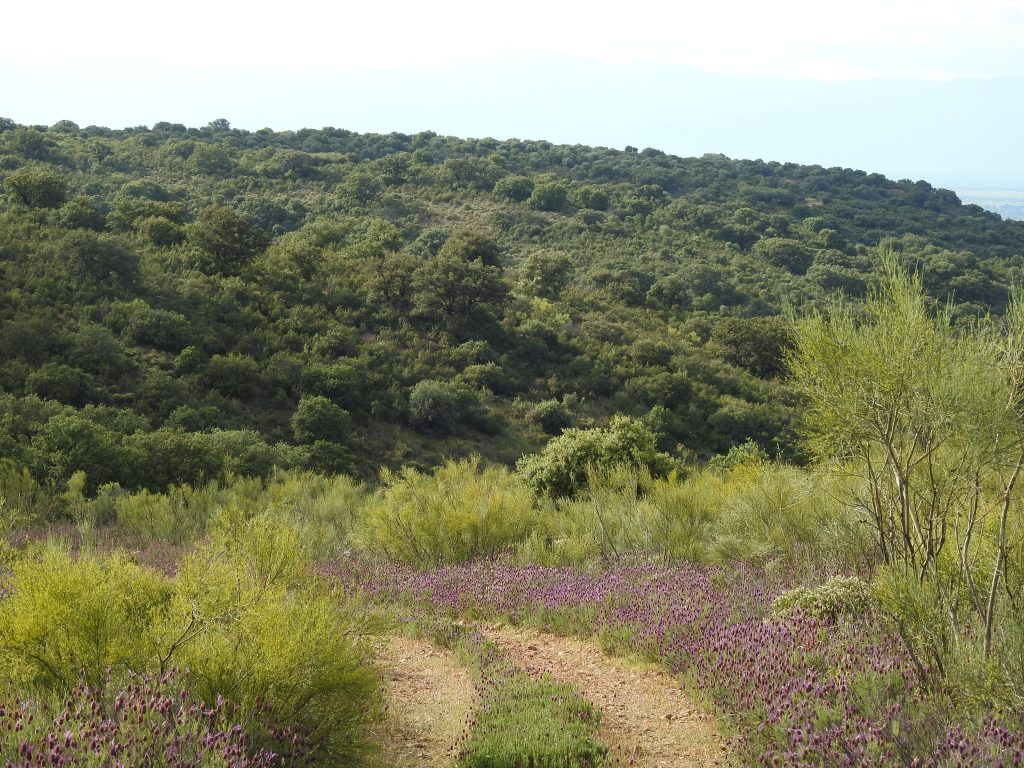 Tiene mucha encina, chaparro y jara. Además tiene un olivar de 800 pies y un almendral abandonado pero recuperable por zonas.