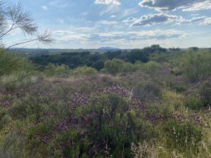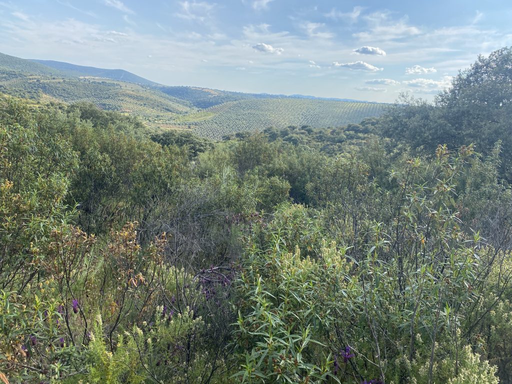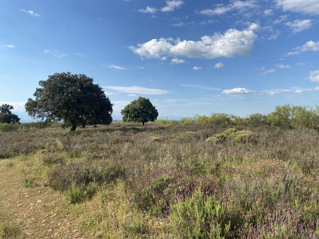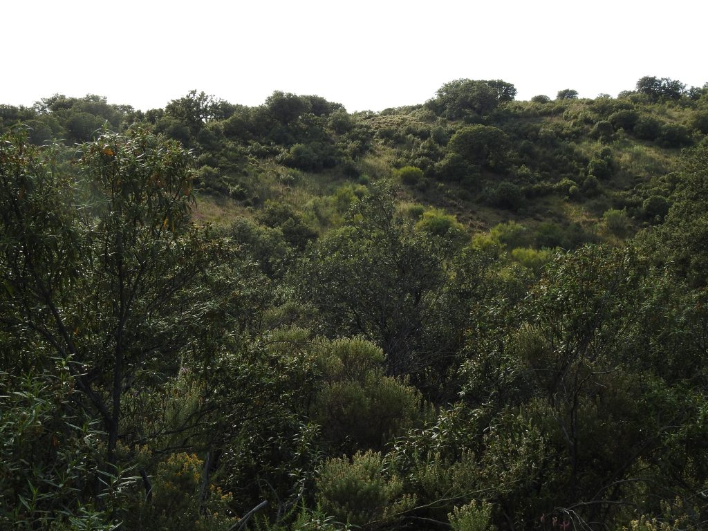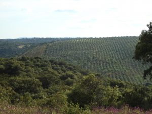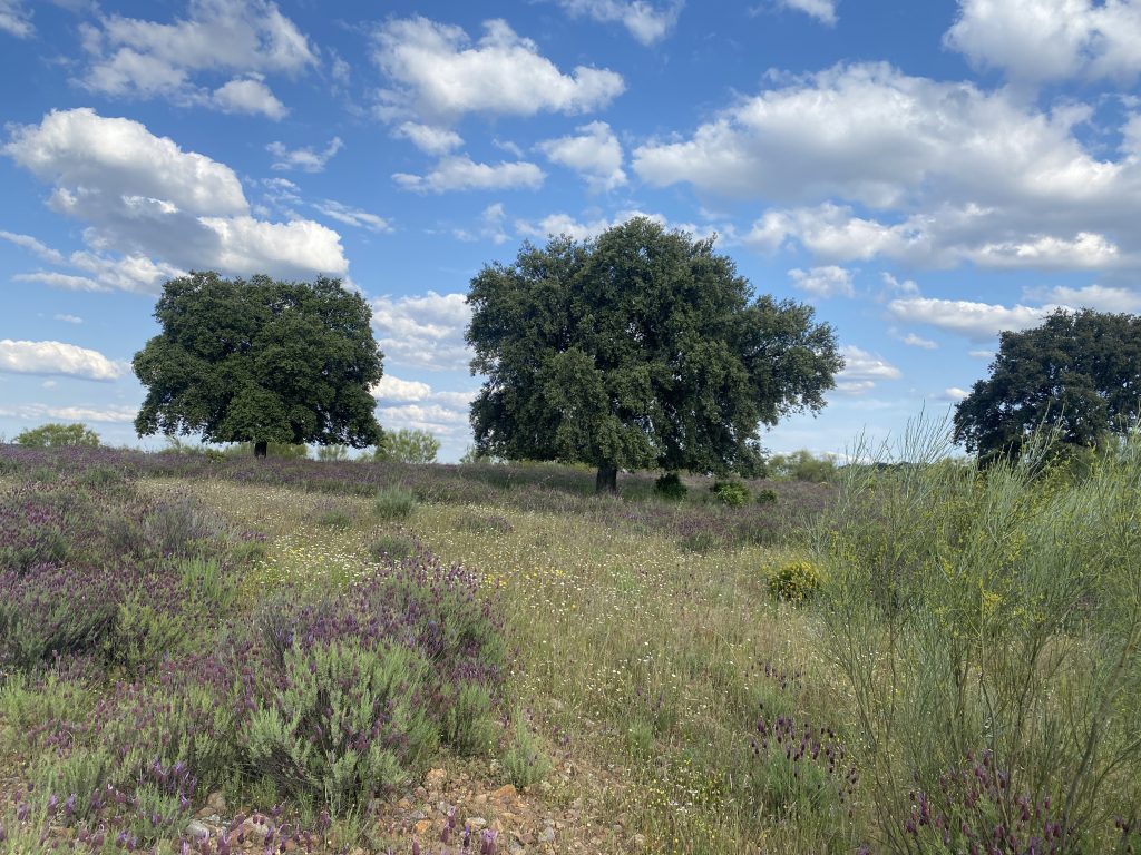 Tiene mucha encina, chaparro y jara. Además tiene un olivar de 800 pies y un almendral abandonado pero recuperable por zonas.