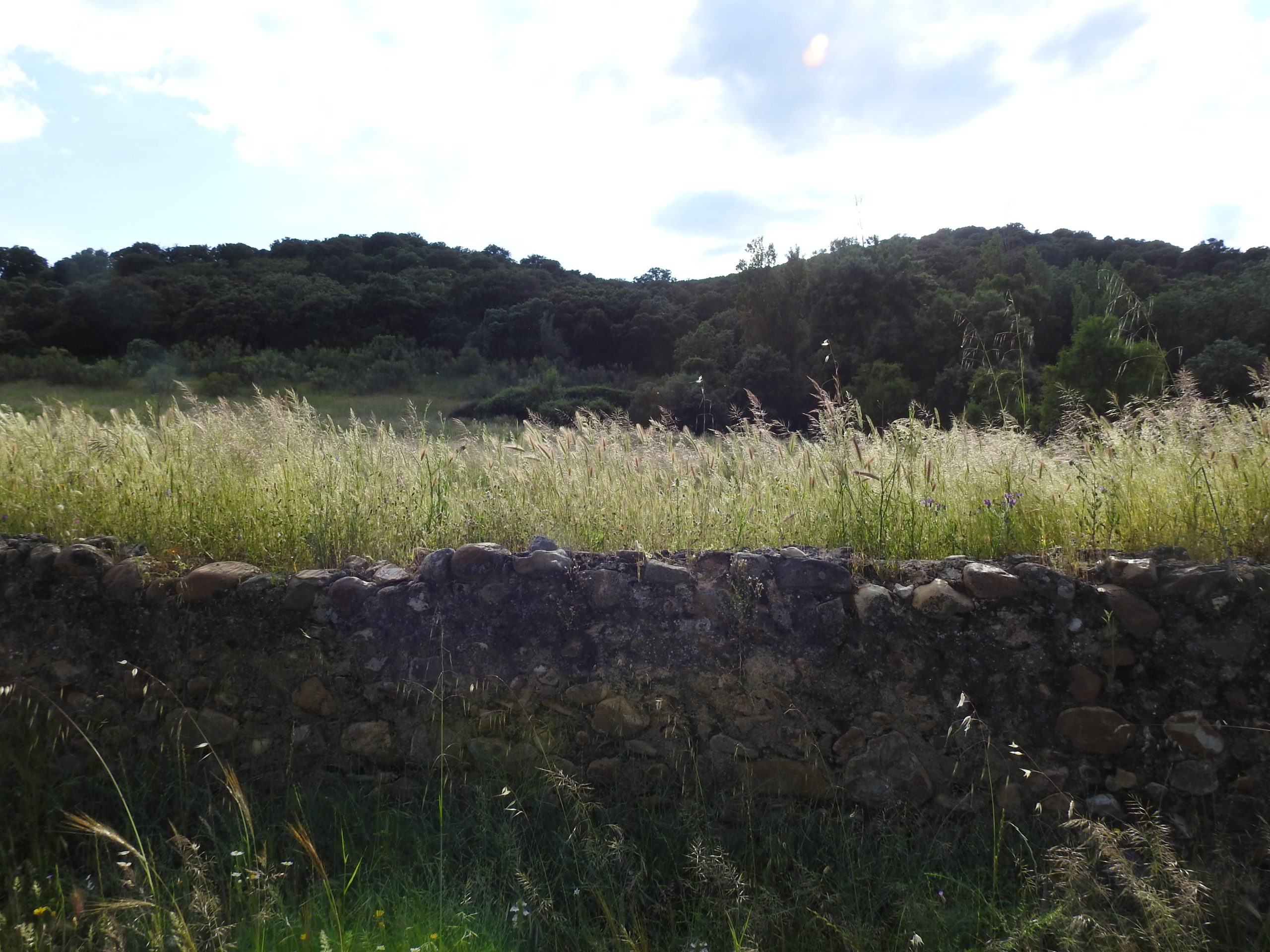 Hay una construcción caída correspondiente a una antigua vivienda y construcciones ganaderas.