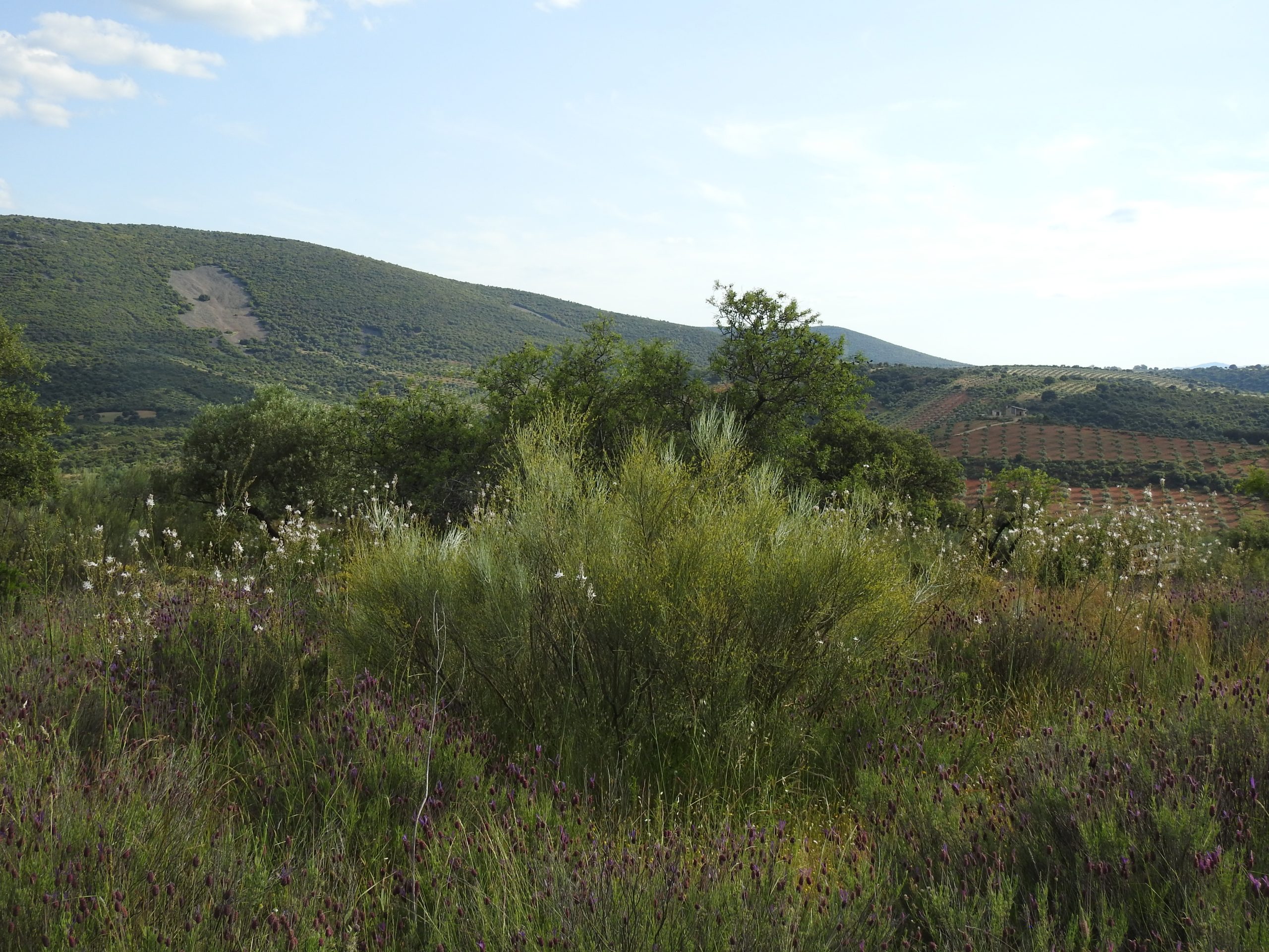 Tiene mucha encina, chaparro y jara. Además tiene un olivar de 800 pies y un almendral abandonado pero recuperable por zonas.
