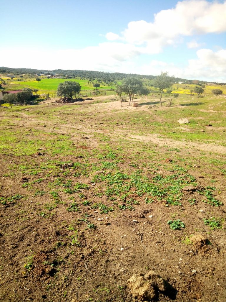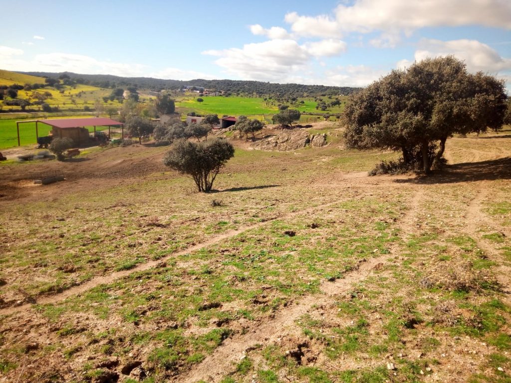 La finca tiene un buen pasto, salpicado con alguna encina y chaparro. Es un lugar óptimo para el ganado. Actualmente tiene 20 vacas/terneros, 50 ovejas y 5 caballos, que se incluyen en el precio.