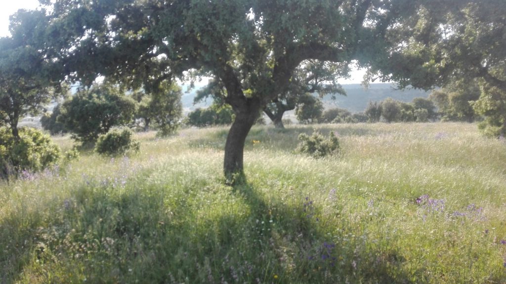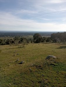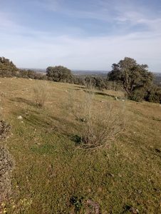 Finca con muy buenos pastos. Salpicada de encinas que conforman un paisaje adehesado de orografía suave, con la parte central de la finca más elevada, haciendo una pequeña colina.